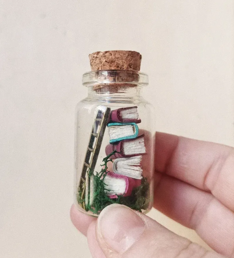☕The Mini Library is designed to be opened, revealing its charmingly disorganized pages. It serves as a delightful conversation starter, perfect for displaying on your bookshelf, desk, or coffee table.