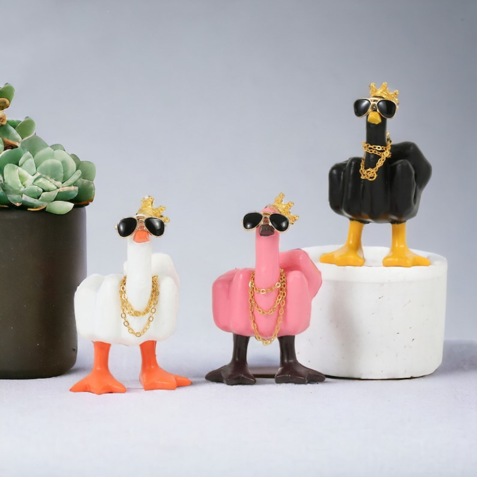 🦆【MID FINGER DUCK PRO WITH ACCESSORIES】offering a pastable crown, sunglass and a removable necklace, you can personalize your own duck. With stickers under Duck's feet, you can put it everywhere you want.