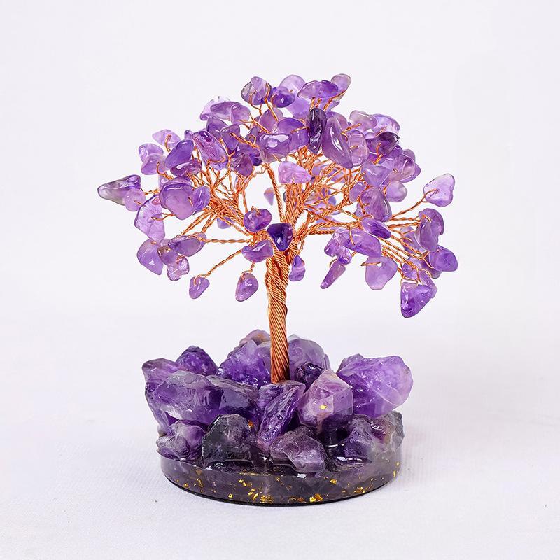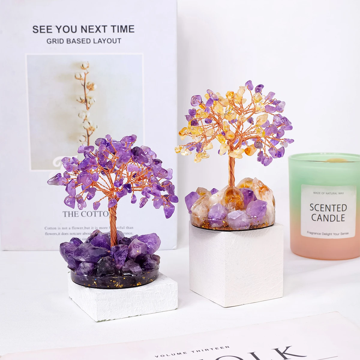 This is an exquisite natural crystal cluster tree ornament, meticulously crafted with high-quality crystal gravel. Each crystal emits a mysterious and noble light.