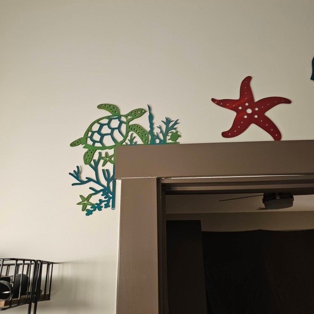 šElevate the charm of your home's entry with our exquisite Metal Sea Turtle Door Corner Decor. This stunning piece is more than just a door topper; it's a unique combination of metal art and door decor that adds a touch of coastal elegance to your space.